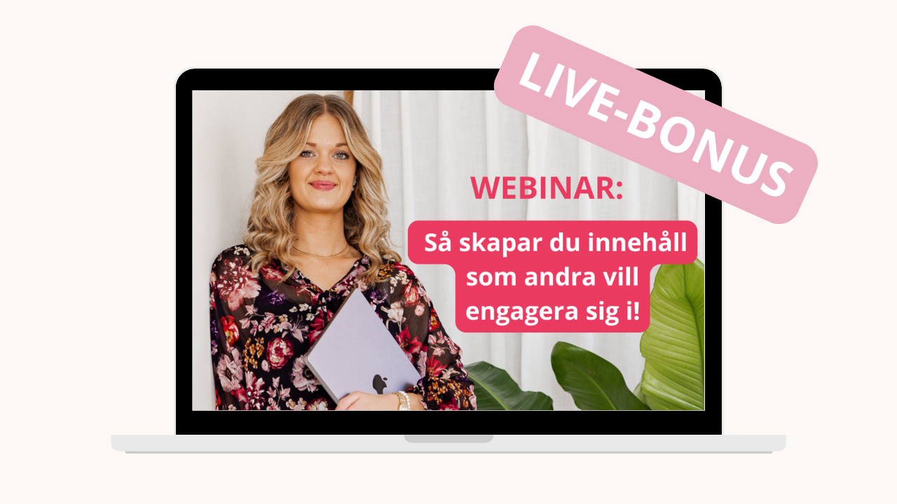 Genom att anmäla dig till webinaret registrerar du dig även för mitt nyhetsbrev. Det innebär att du ibland får mail med bl.a. inspiration, tips och utmaningar som hjälper dig att nå ut med din expertis – helt kostnadsfritt. Du kan när som helst avsluta din prenumeration.